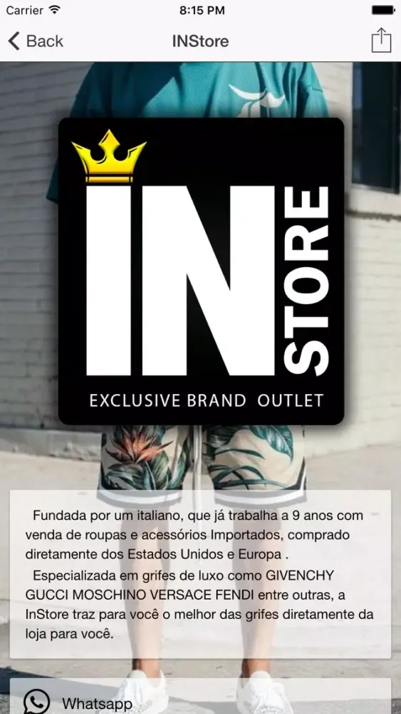 Fundada por um italiano que já trabalha há 9 anos com venda de roupas e acessórios importados, comprados