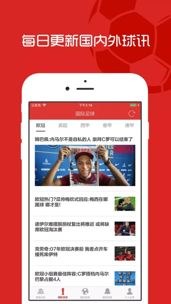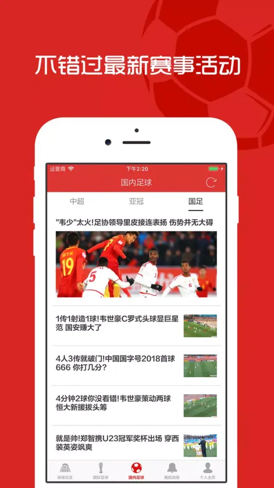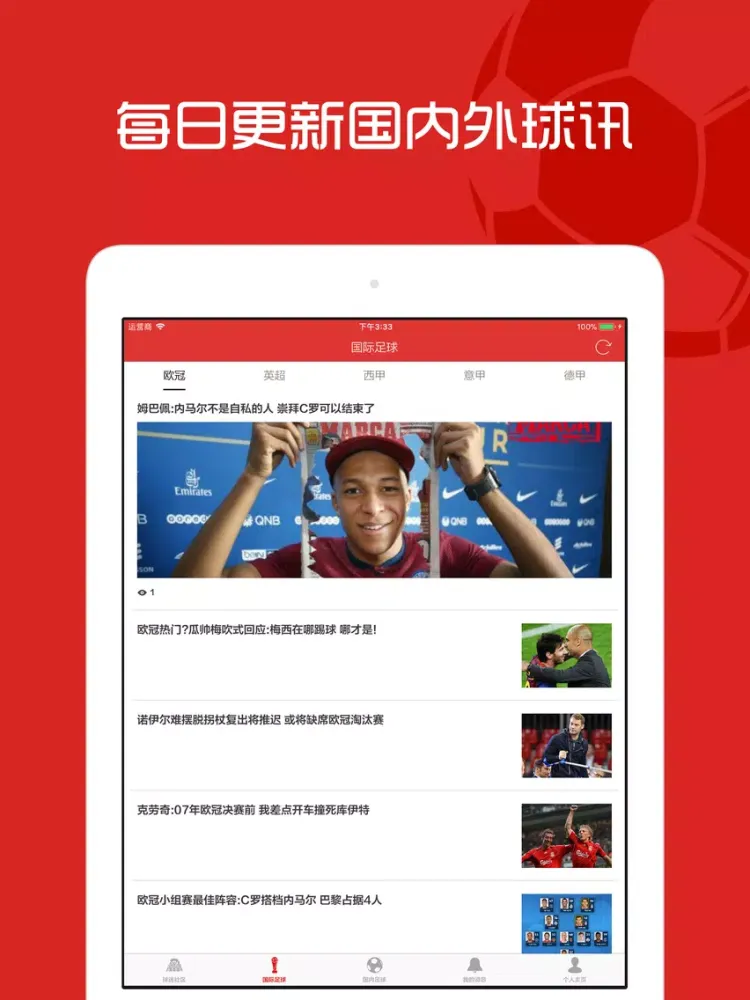 1. 国内外足球赛事资讯,欧冠、英超、西甲、意甲,德甲、中超、亚冠等一级联赛,以及各类二三级联赛每天更新,实时掌握最新动态。