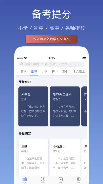* 小学、初中、高中教材文言文,《古文观止》222篇全本