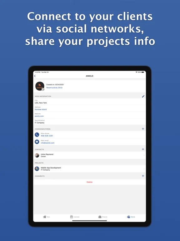 • Keep database of projects and clients in your smartphone, store all the information as close to you as possible