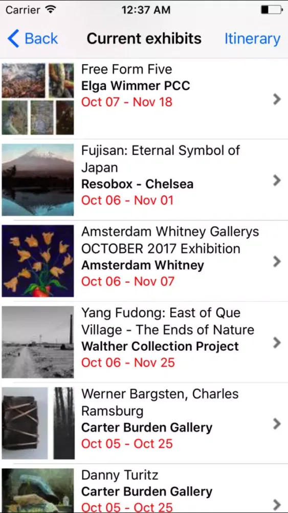 -View photos of exhibits on each gallery's profile screen