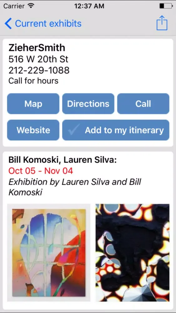 -Call the gallery, get directions, view its website, map it and add it to your itinerary