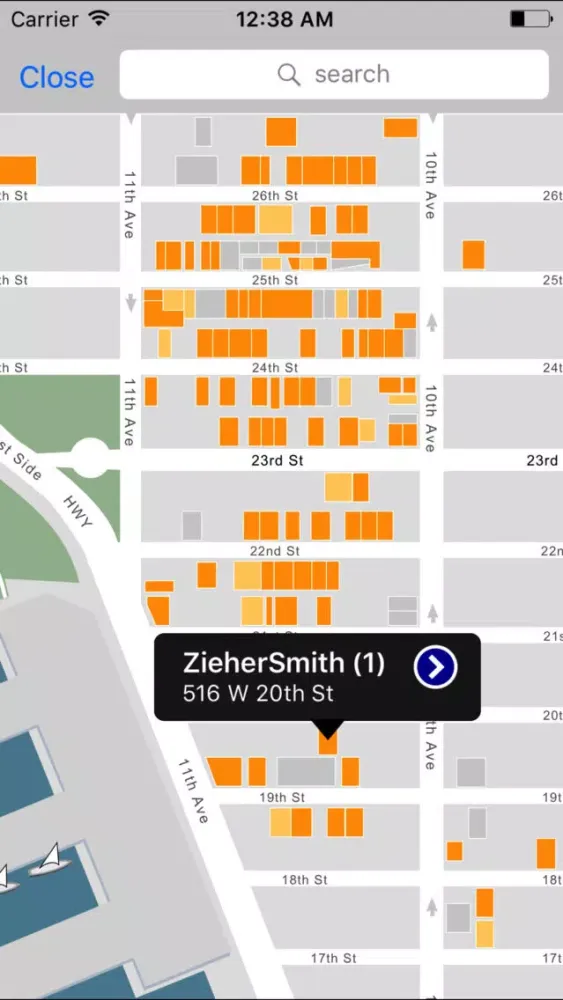 -Search galleries by name and address right from the map