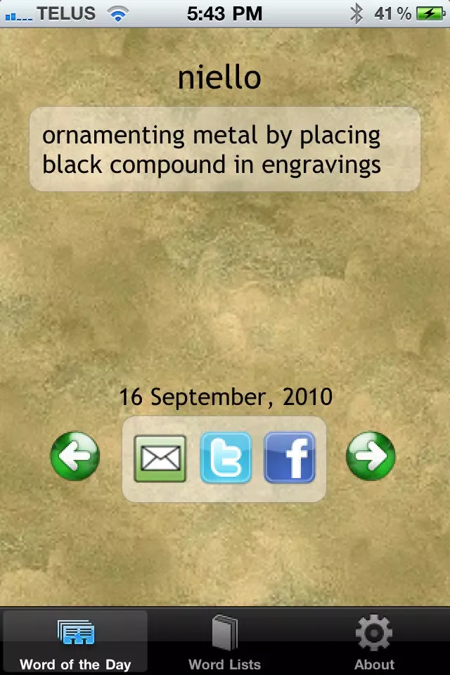 This app introduces you to a new weird word every day.... You can share the words via twitter or email, or just keep the words to yourself and impress your friends with your new mastery of words that few people will have ever heard of!