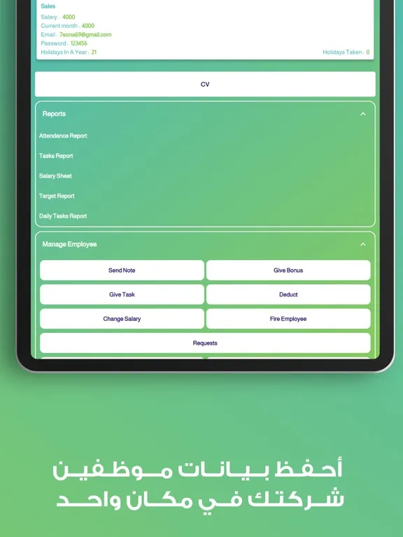 Ctrl helps you in human resources management in the easiest way, starting from employee files and documents, passing through up manage on attendance and leaving and staff performance appraisal helps you track progress, and provide feedback to your employees also can generate reports that provide insights into employee performance, allowing make informed decisions about promotions, training, and development opportunities