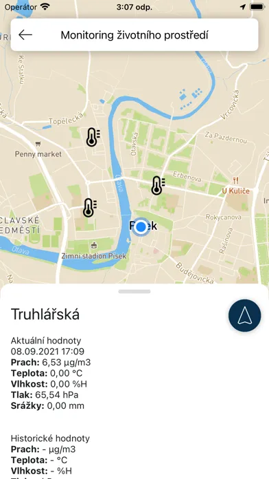• Monitoring životního prostředí - mapa senzorů