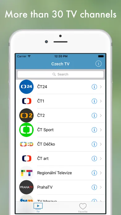 Install a mobile application Czech TV! Sometimes there are situations when you need to watch TV online some channel. If you're behind a stationary computer or watching TV - it's not a problem, but if you're on vacation or on the road, then mobile app Czech TV will help you. Czech TV broadcasts the most popular Czech TV channels via the Internet.