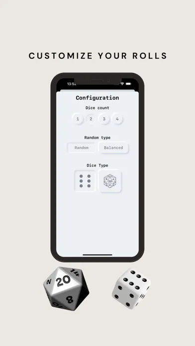 Whether you need a six-sided die (d6) or a twenty-sided die (d20), Dice has you covered.