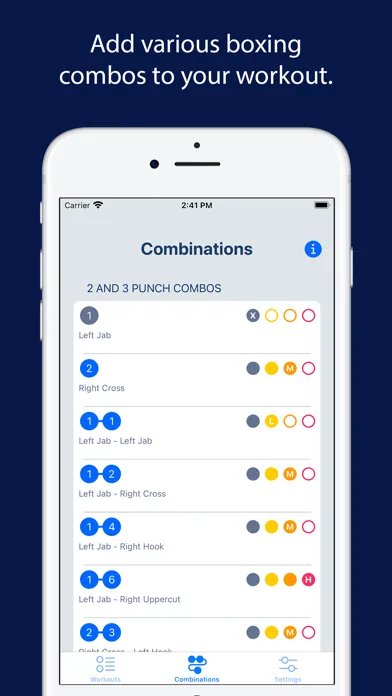 • Favorite combos: Select your preferred boxing, kickboxing, and defense combinations to be called out during workouts.
