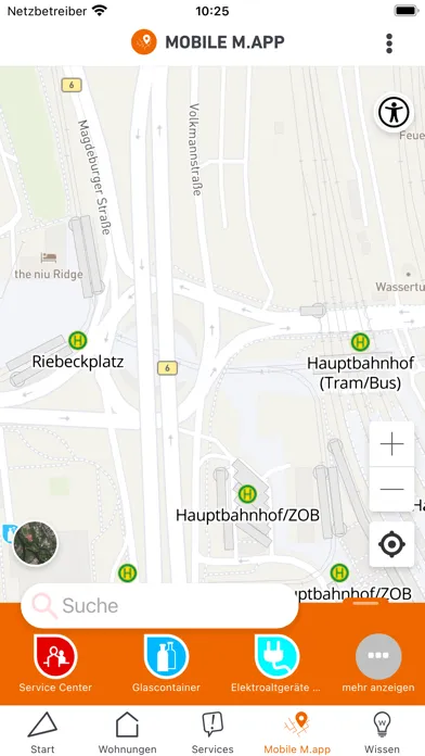 Dank der veränderten Version der interaktiven Stadtkarte „Mobile M.app“ weißt Du in „Mein HALLE Zuhause“ immer, welche Haltestelle in deiner Umgebung ist und wann dort die nächste Bahn fährt. "Mein HALLE Zuhause" zeigt zudem die Altglascontainern, Notdienstapotheken, Briefkästen des MZZ-Briefdienstes und einiges mehr.