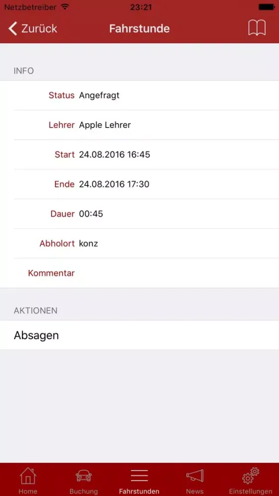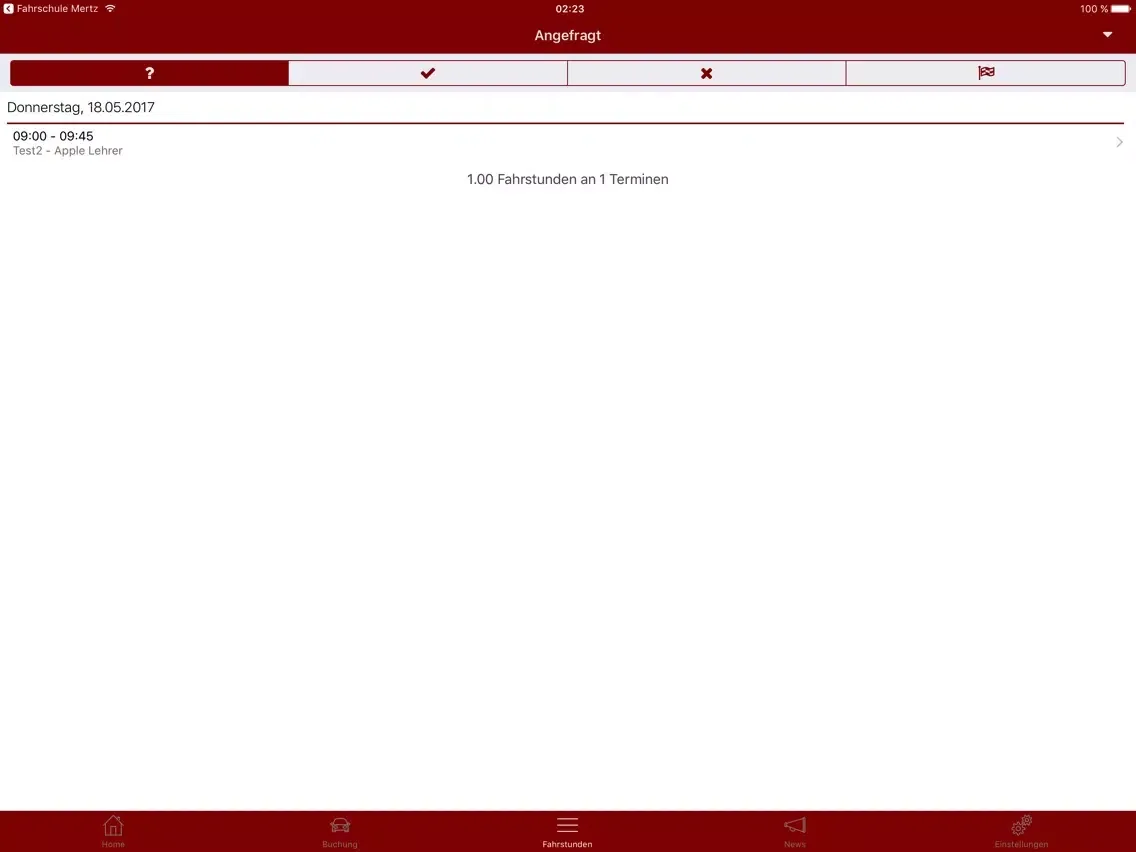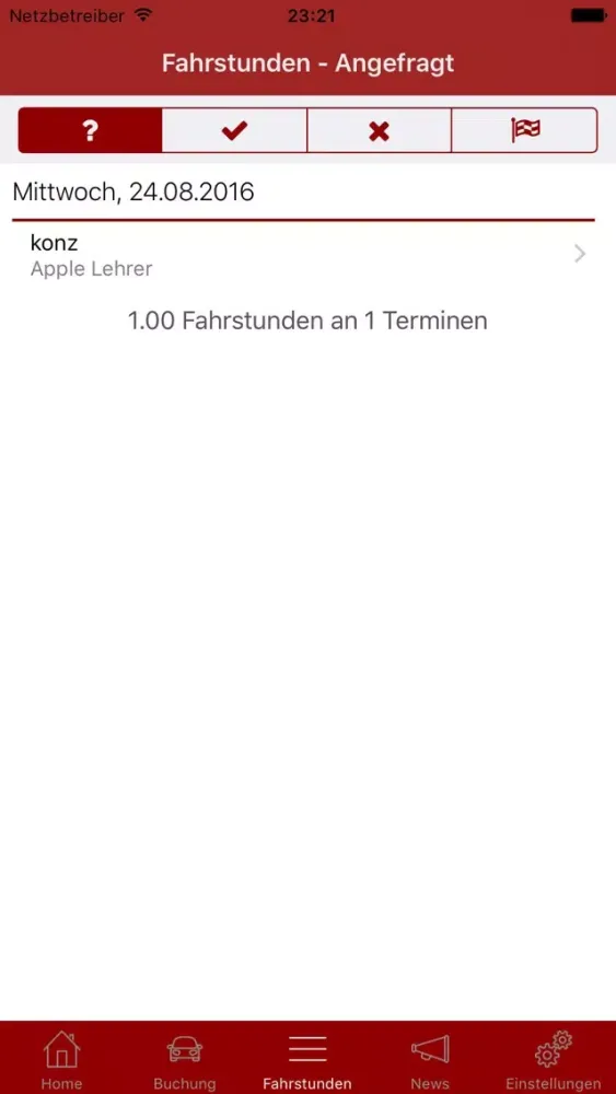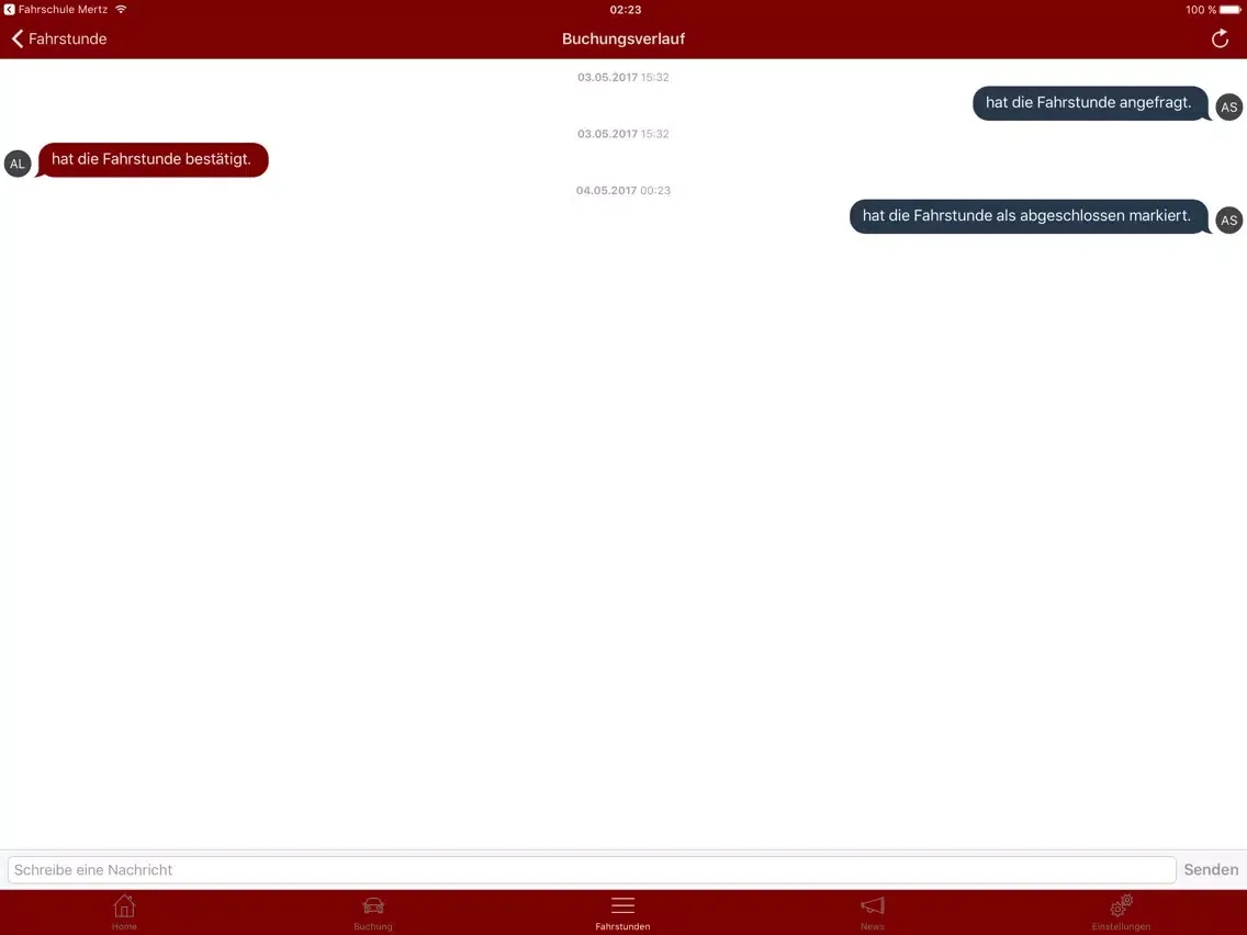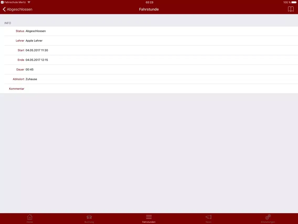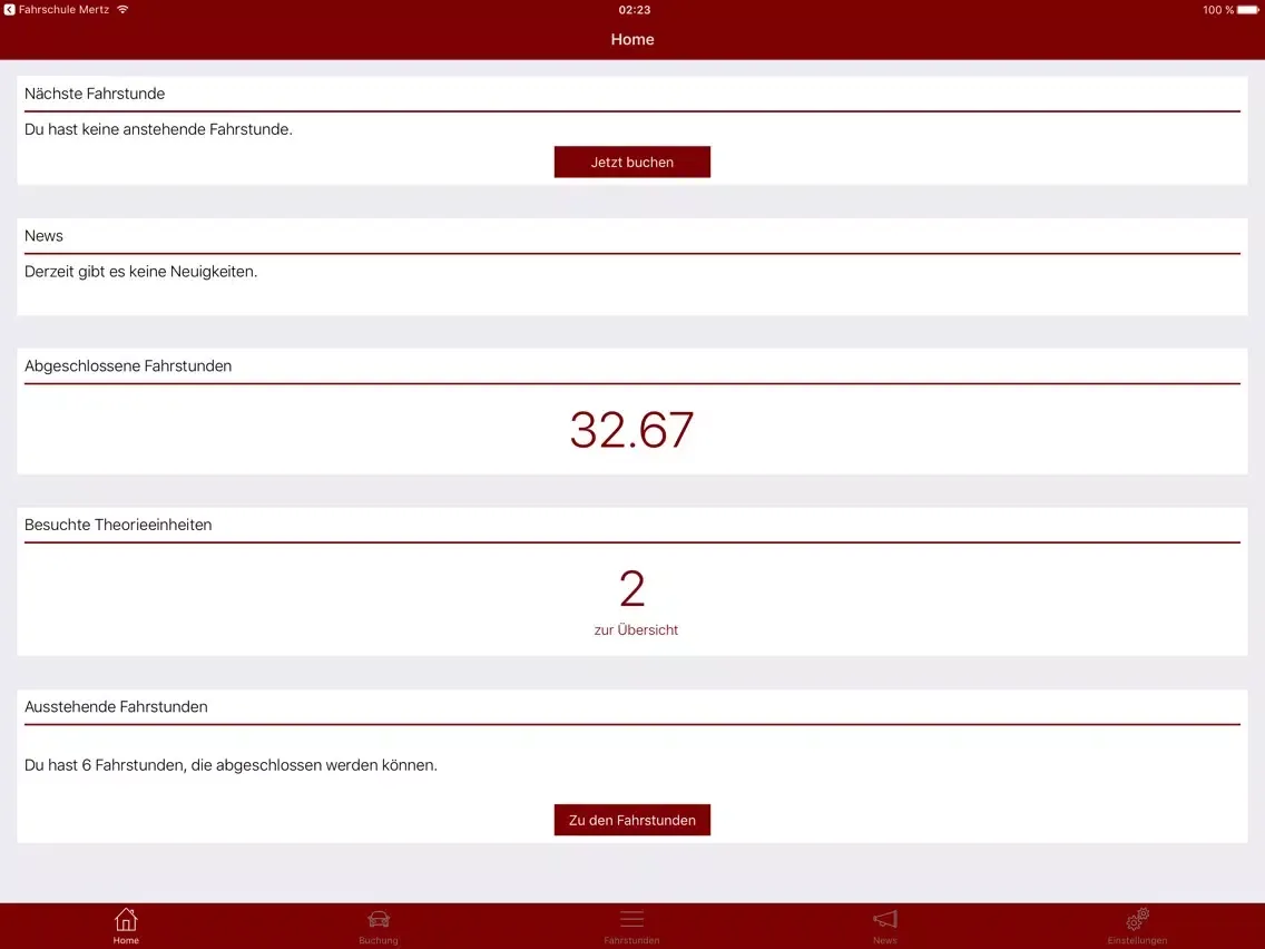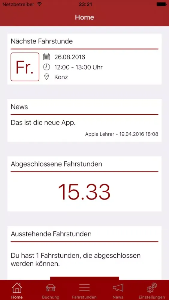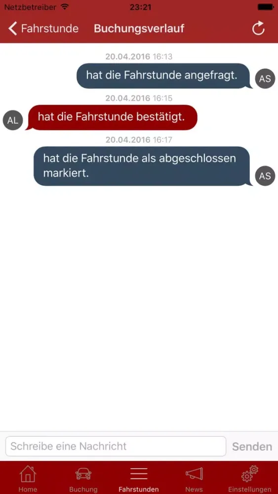 * Buche Fahrstunden über die App
