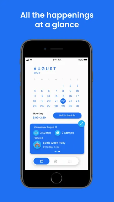 Integral is a community hub for high schools. The app gives users a live status view of their class schedule as the day progresses, and it gives students a bird's eye view of everything happening on campus – from events, sports, to announcements from school administrators. The app also offers convenient shortcuts to access the student ID card and website links that students visit often, as well as a calendar where students can view all the events, games, and schedule for every day of the school year.
