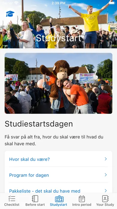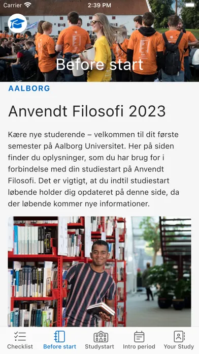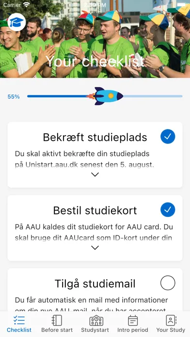 AAU Start is for you who want to start a bachelor's degree at Aalborg University. The app exists to make your study start easier and therefore gathers relevant information about the study start period - you get, among other things, a checklist to get you ready as well as a program for the day you start your studies and the following study start period.