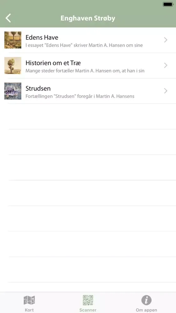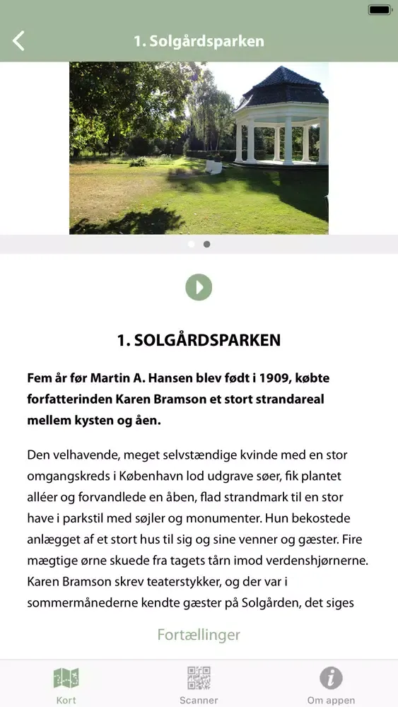 Ved at skanne QR-koderne på et punkts ruteskilt downloades lydtekster. Man kan sætte sig på rutepunktets bænk og lytte. Kyndigt udvalgte citatprøver, suppleret med oplysninger, findes indtalt. Der er udelukkende valgt tekster fra fortællinger, der kan knyttes til rutepunktets lokalområde.