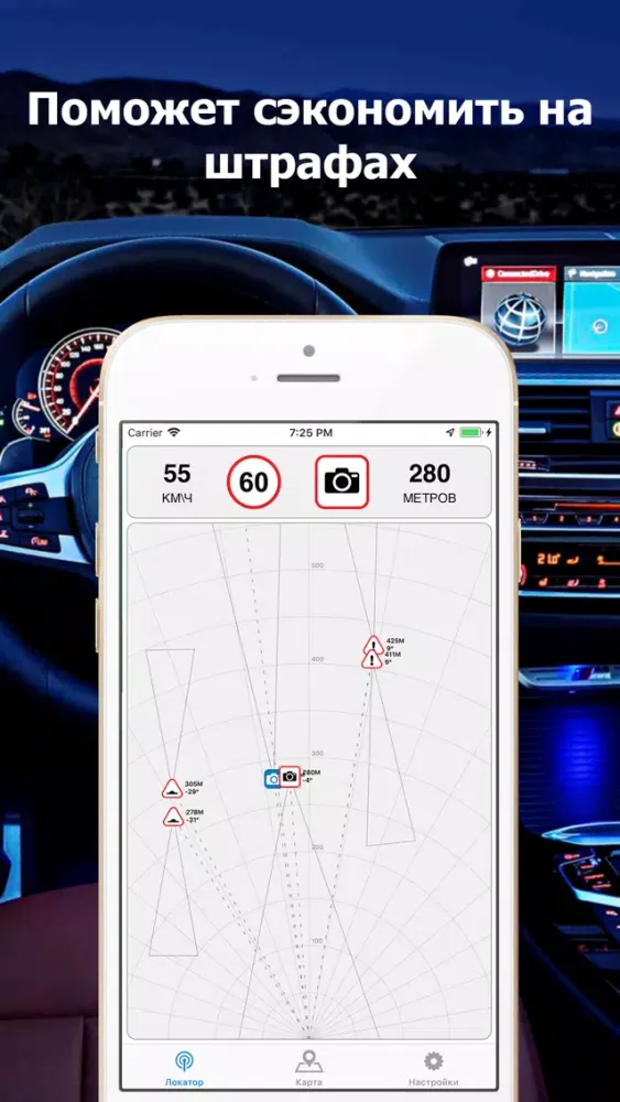 Приложение «Мобильный Антирада Про» предупредит Вас о камерах, постах ДПС, лежачих полицейских и прочих опасностях на дороге, поможет сэкономить на штрафах за нарушение ПДД и ремонте подвески автомобиля.