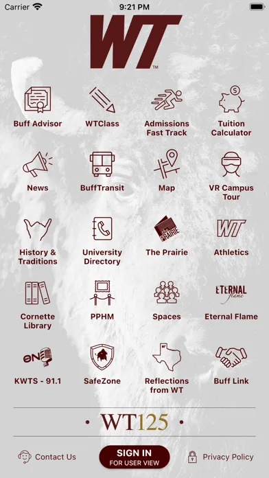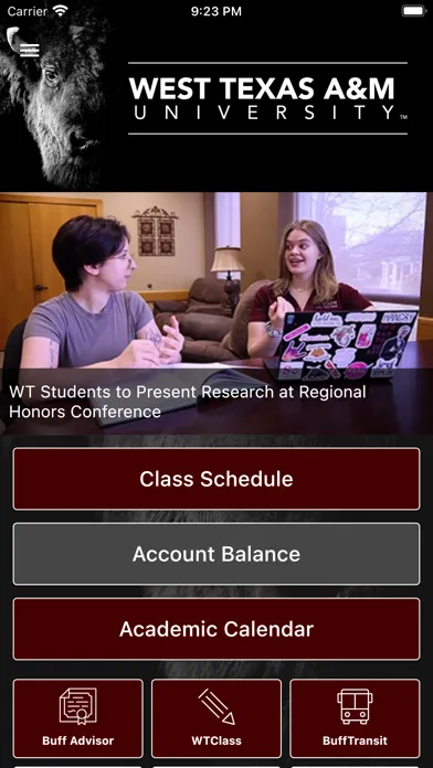 WTmobile provides easy access to resources for students such as BuffAdvisor, WTClass, and BuffTransit in addition to public resources like Campus News, Athletics, VR Campus Tour, the Cornette Library, and the WT radio station, KWTS 91.1. WTmobile is a great resource for current and prospective students, faculty, staff, and even parents and community members.