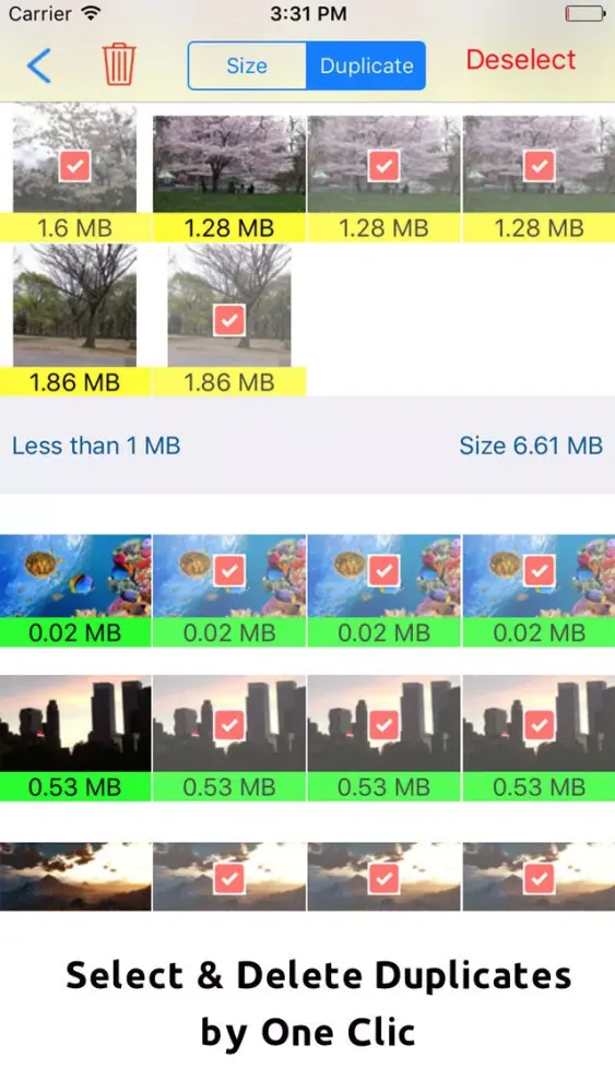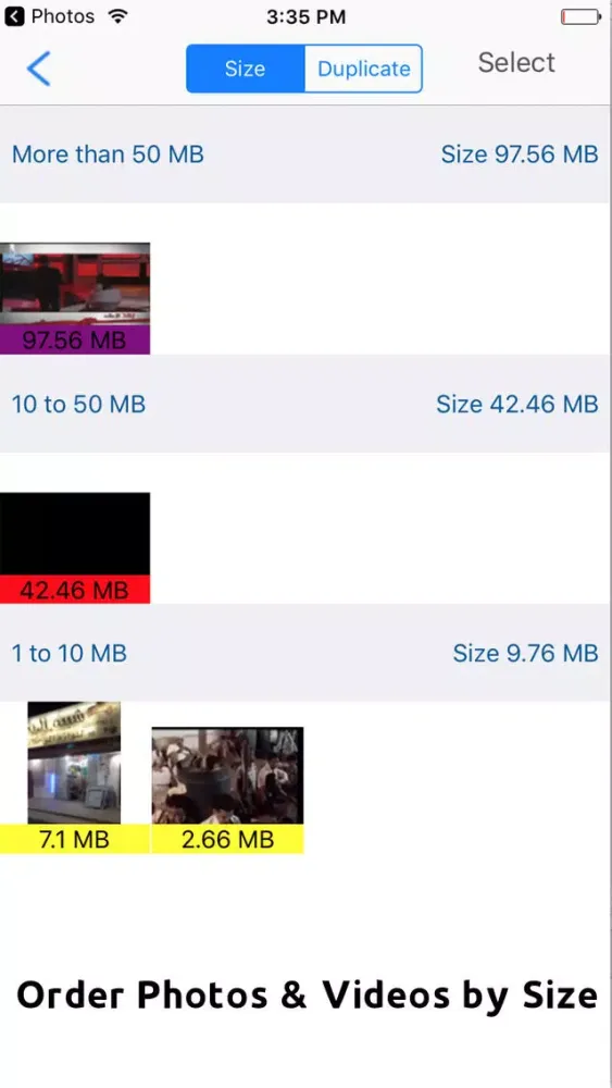 - Sort pictures and video by size and divide them into groups to make it easier to manage & delete them.