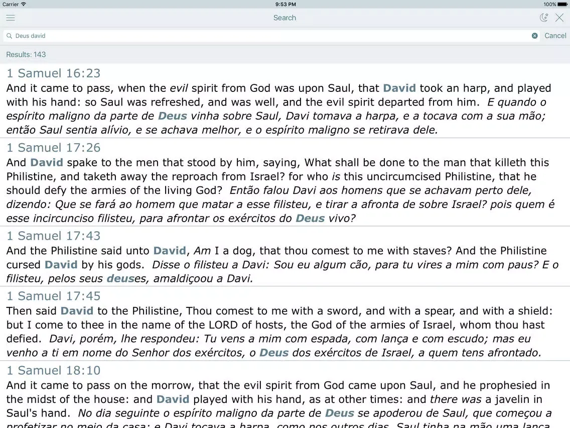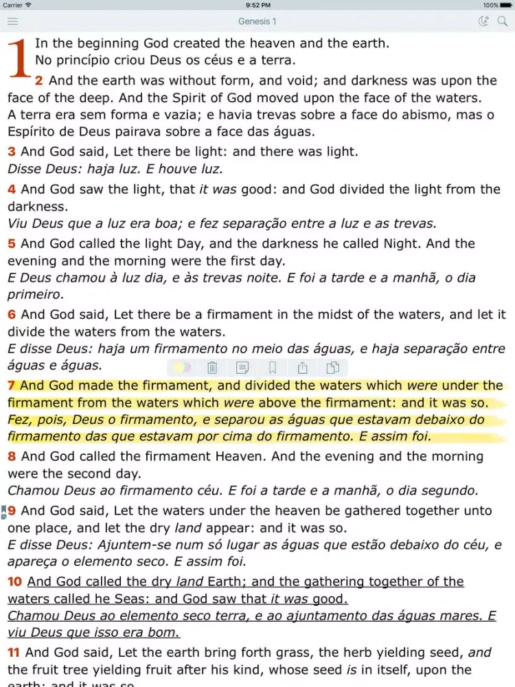 Скриншоты Portuguese English Bilingual Bible (Bíblia Almeida - King James Bible) iPad