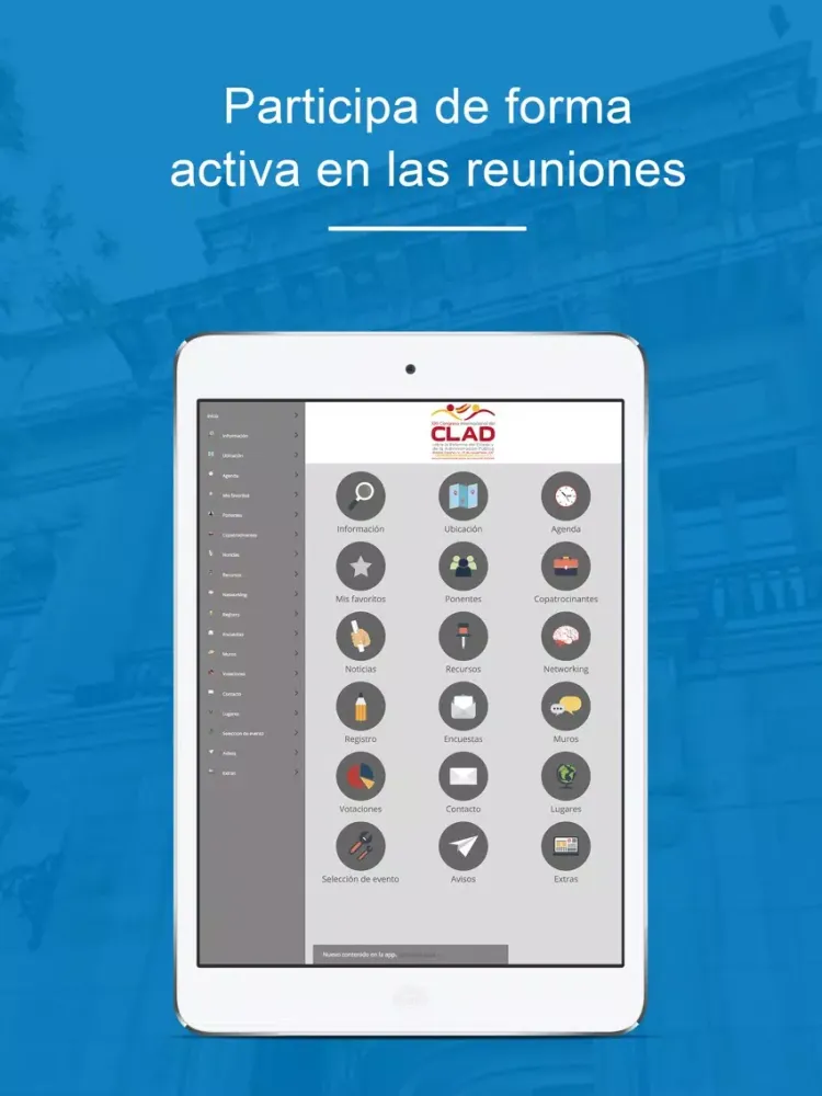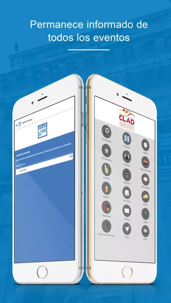 App multievento que contiene información sobre los eventos organizados por el INAP, el Instituto Nacional de Administración Pública de España. Esta aplicación posibilita la inscripción y el contacto con las personas participantes de las jornadas, conferencias y congresos llevados a cabo por el instituto.