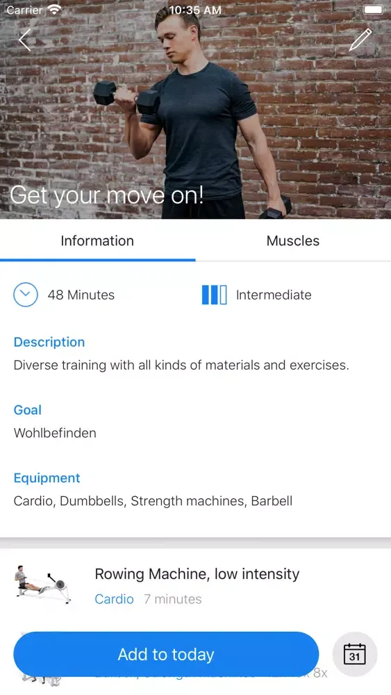 Vorgegebene Workouts und die Option eigene Workouts zu erstellen