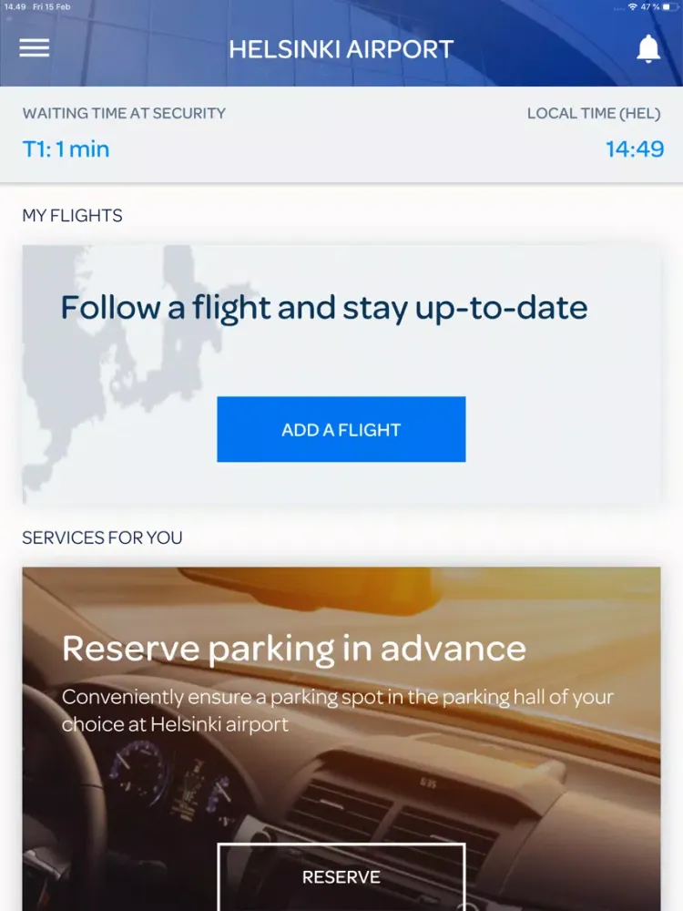 Get the renewed Helsinki Airport app for frequent flyers. Register, and enjoy the many benefits!