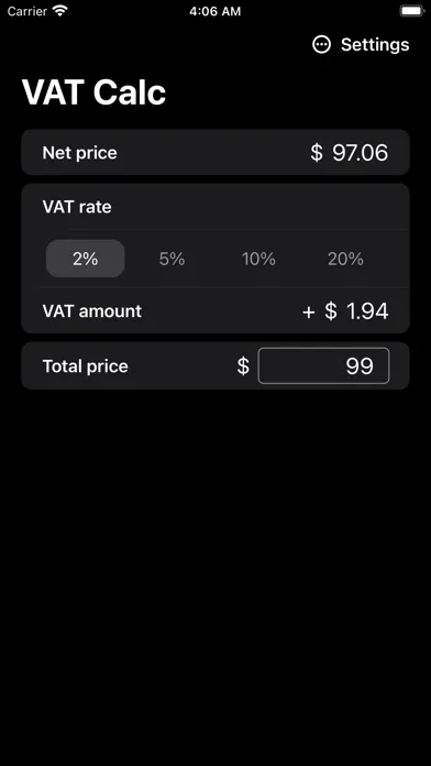 Enter the amount excluding VAT or the amount including VAT and choose the VAT rate.