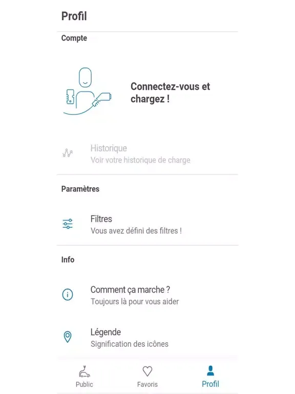 – Consultez une carte en temps réel de l’état des points de charge.