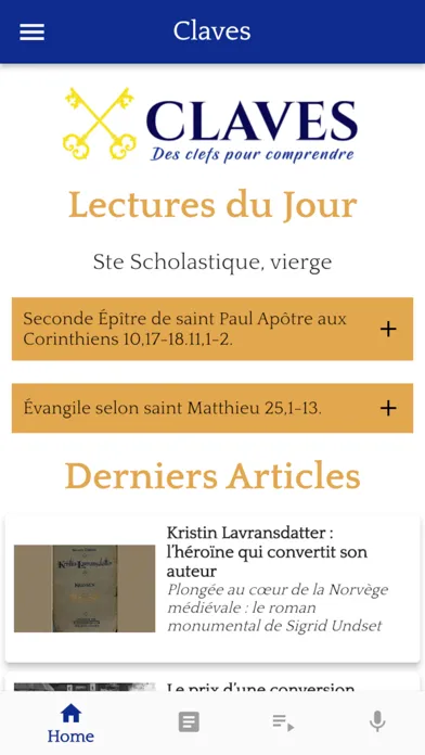 En plus des articles classés par catégorie (théologie, écriture sainte, spiritualité, famille…), Claves propose également d’approfondir chaque mois des sujets à travers des dossiers spéciaux. Une large place est faite également à l’audio à travers les podcasts des conférences de nos prêtres, pour se former autrement. Une lettre électronique permet d’être à tout moment informé des dernières publications, et chacun peut également poser ses questions à un prêtre, pour une formation plus individuelle.