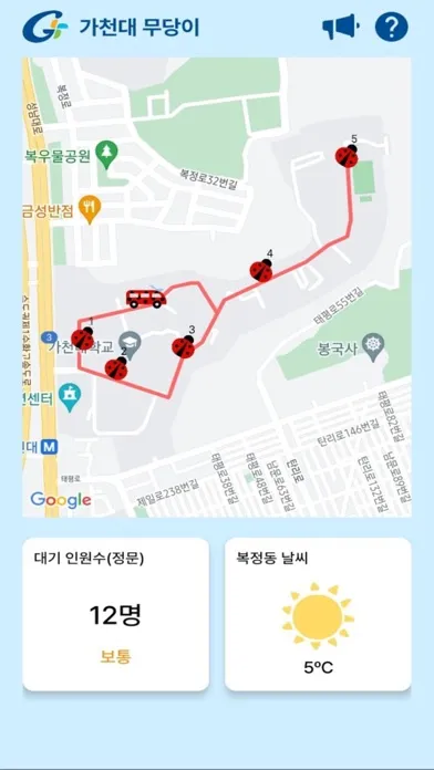 가천대학교 교내 셔틀버스(이하 '무당이')의 위치를 지도상에 표시해줍니다.
