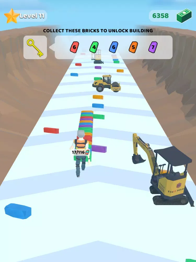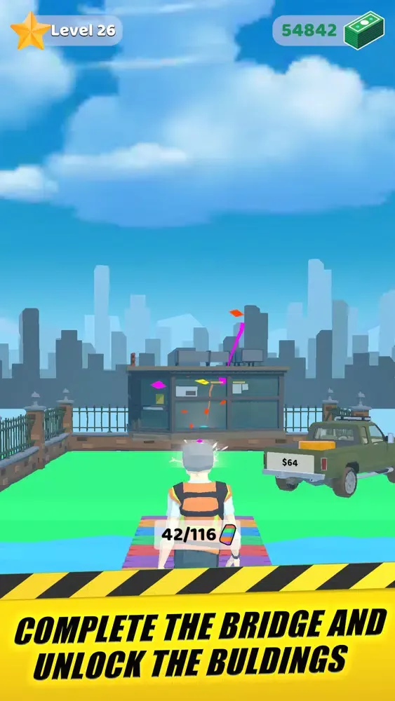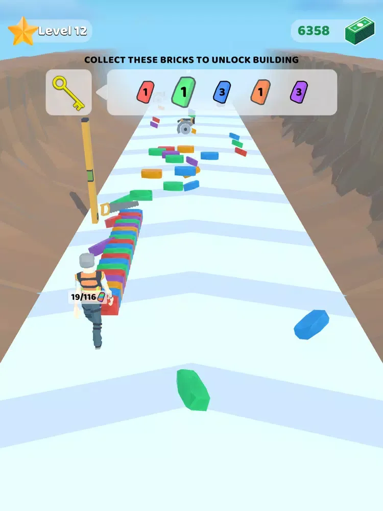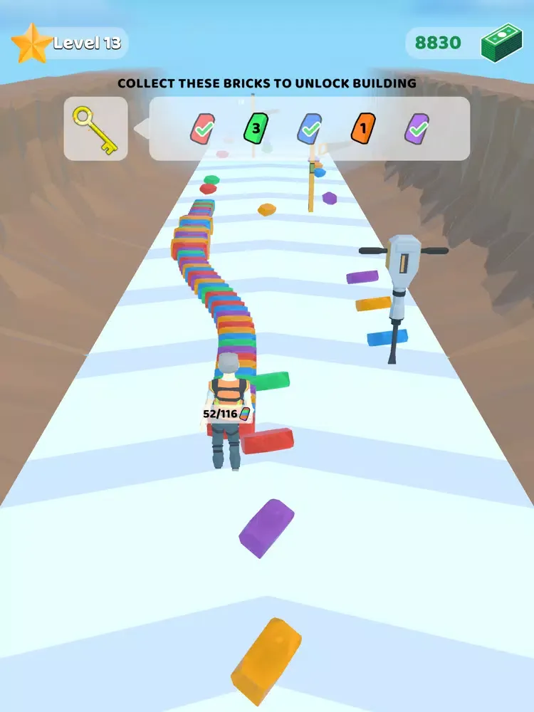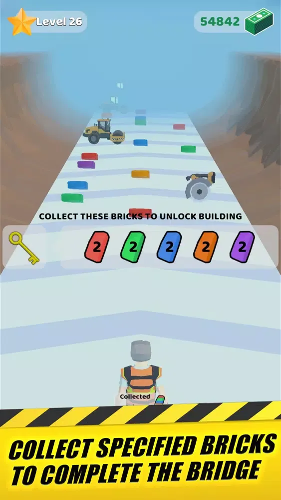 - Collect & Stack bricks to complete the bridge.