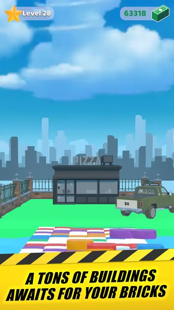 - Unlock the buildings, sell extra bricks; earn money and build your city.