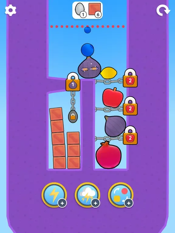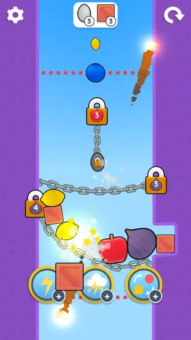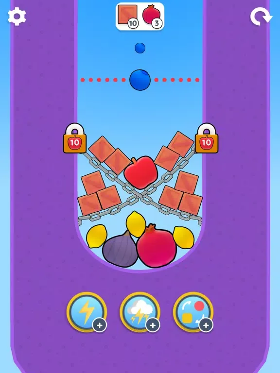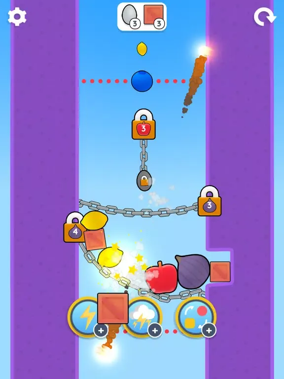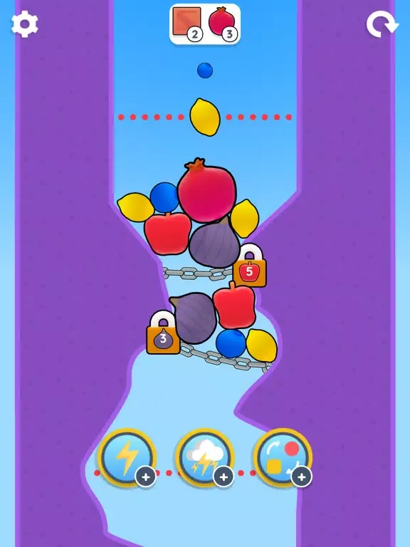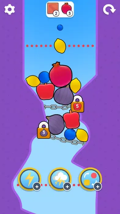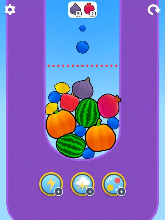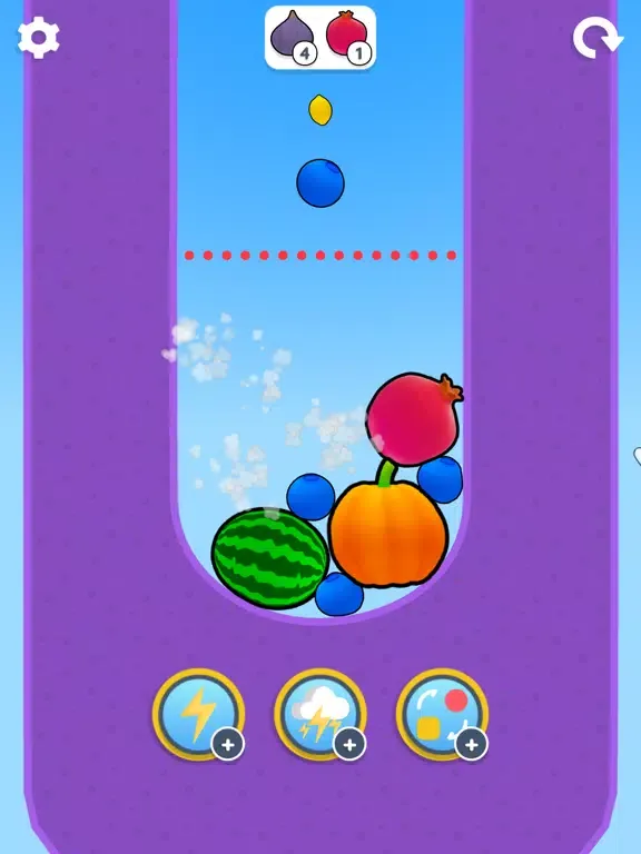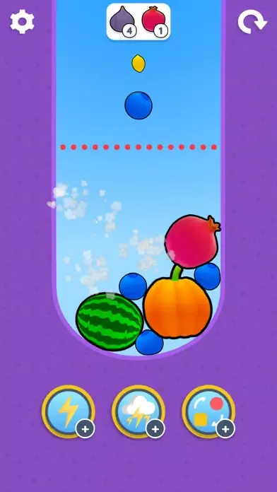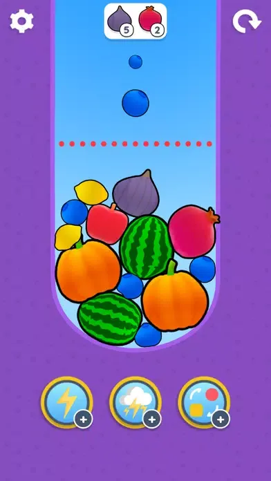 Shoot and merge fruits to get even bigger more juicy fruits. Merge identical fruits to start a chain reaction and see how far your combo goes! Chain reactions reward you with awesome power-ups. Use them to blast those pesky obstacles and solve fun puzzles! Watch out for too many fruits though! If you touch the red the game is over!