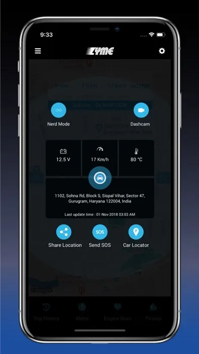 - Alerts in the form of notifications for rash driving, theft, towing, over-speeding, geo-fence breach, trip start, trip end, high coolant temperature, low battery voltage and much more