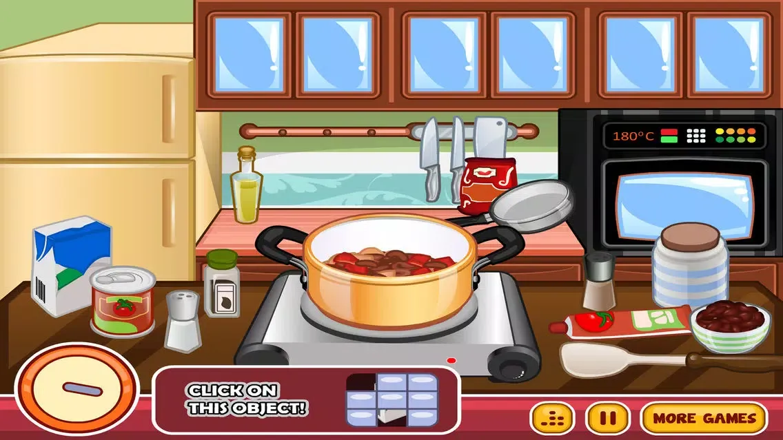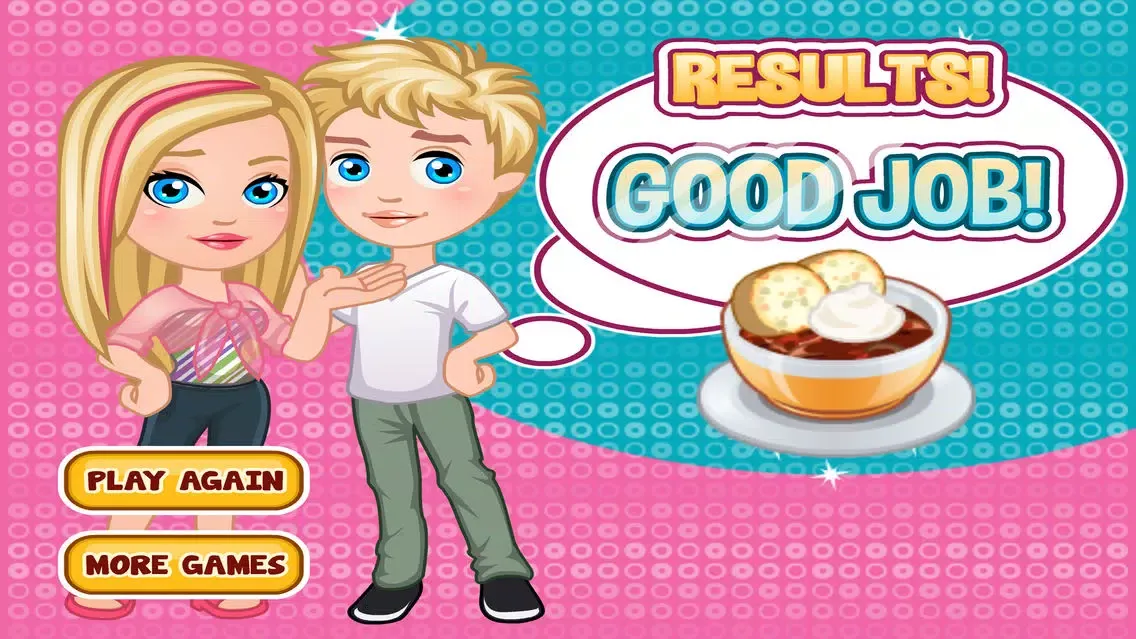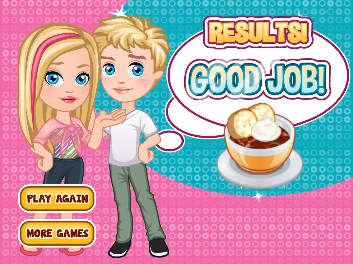 Amy loves to cook many different types of food, but the dish she loves to prepare the most is Ken's favorite, chili con carne. This savory and tangy chili is very easy to make as long as you follow the recipe. Amy loves to use her chili con carne for anything she can think of. Top your favorite hamburgers and hot dogs with the delicious chili, or turn any old plate of chips into nachos just by pouring on some of Barbie's delicious chili con carne. Gather and chop up all of the ingredients to add them to the fantastic chili mix, but hurry up and prepare everything before the time runs out. Follow the instructions to make Barbie's famous chili, and then serve it to Ken so that he can enjoy his absolute favorite meal in this fun Amy cooking game for girls!