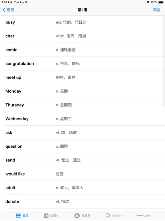 收录包括牛津初中英语,人教版初中英语,新目标初中英语,上海版北京版初中英语等全部分级词汇。免费离线使用,附有单词发音及详尽解释。