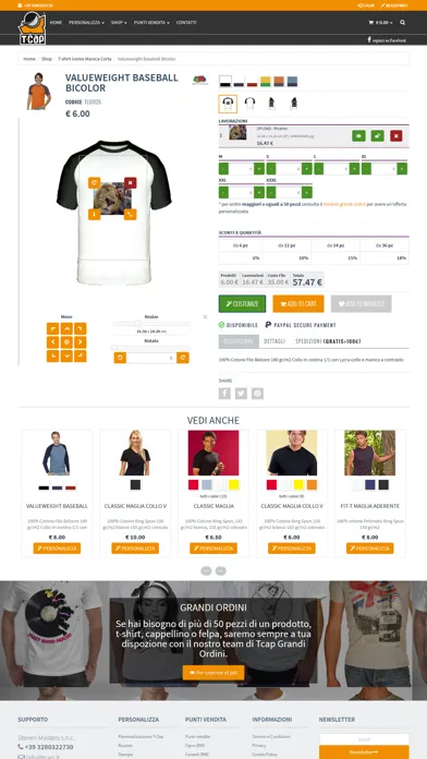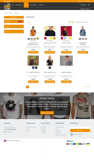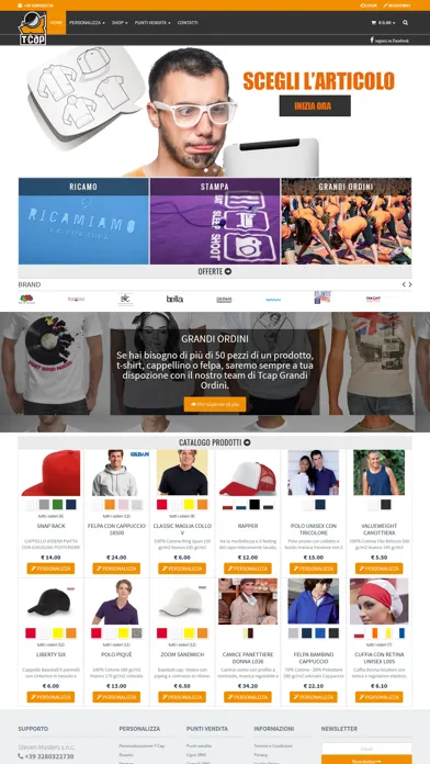 di prodotti disponibili. Il “personalizzatore” permette di vedere un’anteprima del prodotto finito, simulando l’applicazione della stampa o del ricamo di un tuo file oppure di una scritta e proponendo un preventivo di spesa in base al prodotto scelto, alla quantità ed al tipo di personalizzazione richiesta.