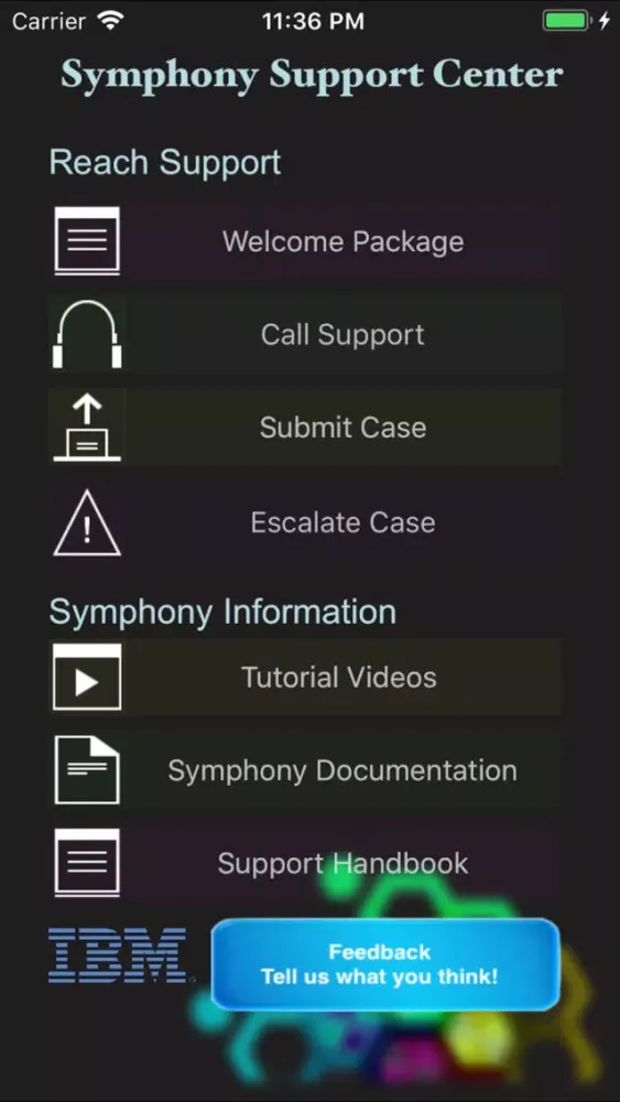 “Symphony Support" delivers a quick and easy way to access IBM support and Symphony related information. It is best used for reference and education purposes. IBM is responsible for all the information and recommends it to Symphony customers.