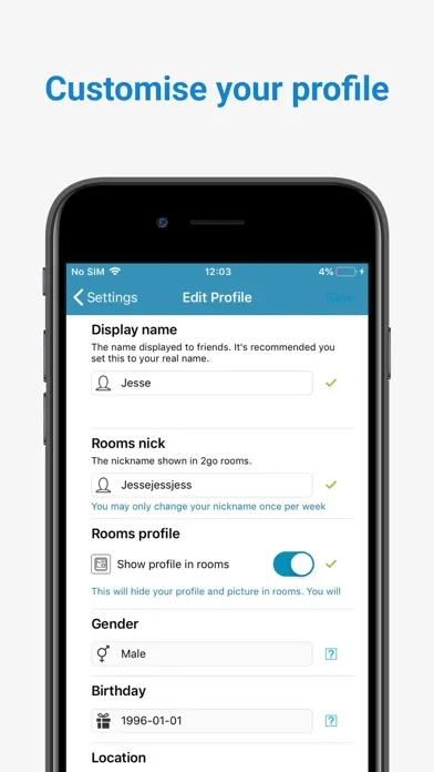 2go is not affiliated with AntiLand, Chatroulette, Omegle, Hot or Not, Hangouts, Imo or similar services.