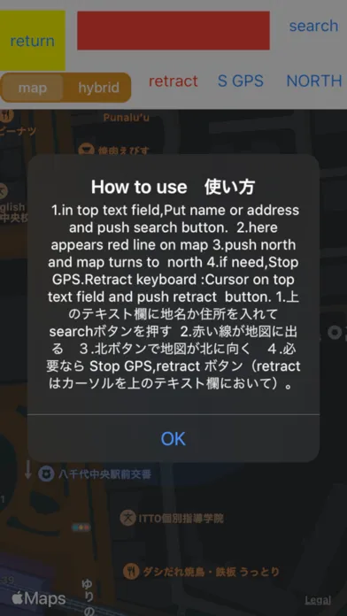 As a support tool for walking, if you press the NORTH button, this GPS map will always turn around the north regardless of the direction of the iPhone or iPad.