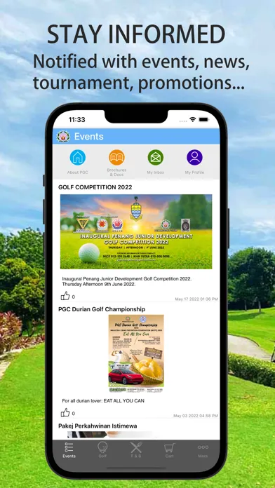 The Penang Golf Club application is the official mobile application for Penang Golf Club at Bukit Jambul, Penang, Malaysia. The application allows the club management to communicate with its members and guests effectively and efficiently. Members and guests will be well informed with important news, event updates, beneficial promotions, and receive vouchers, coupons and statements. With online ordering services becoming a norm and the Club offers excellent combination of Japanese, Chinese, and Western cuisine, users may order food and beverage for delivery in just a few taps as the application is made simple and intuitive to use.
