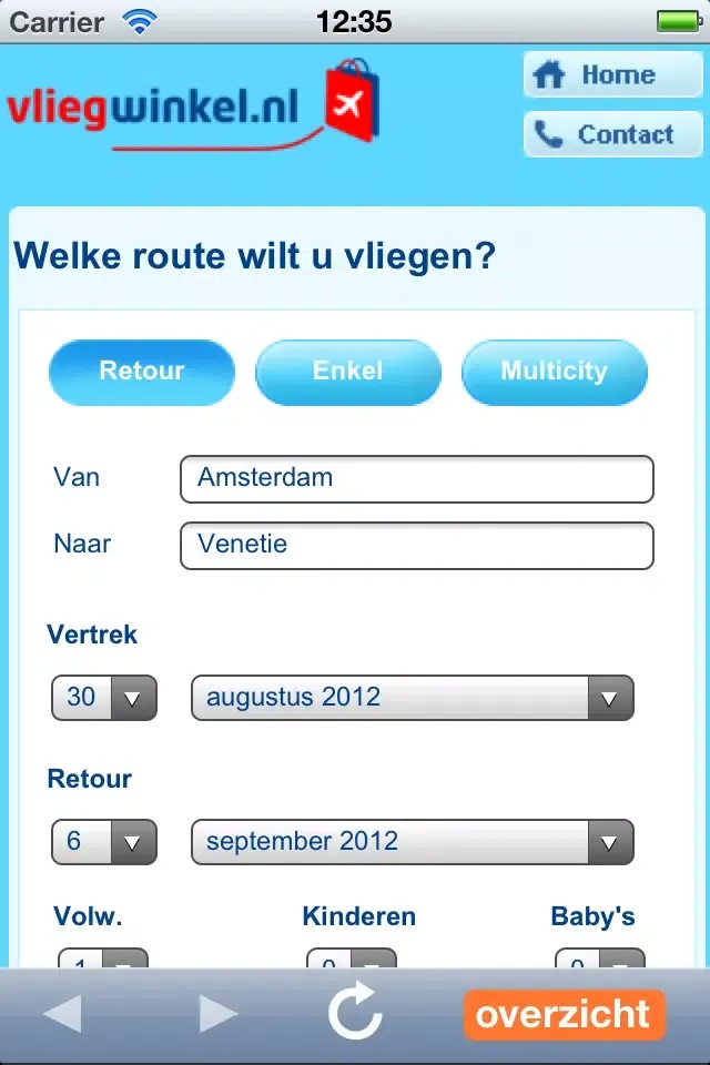 Vergelijk en Boek Direct bij KLM, Ebookers en Alle andere Mobiel Boekbare Aanbieders.