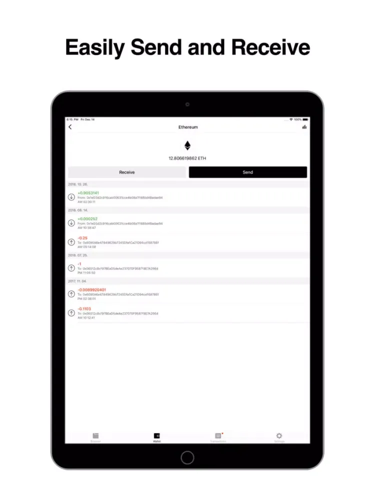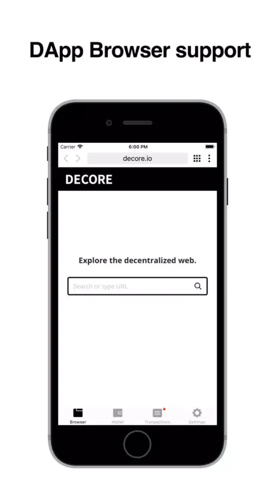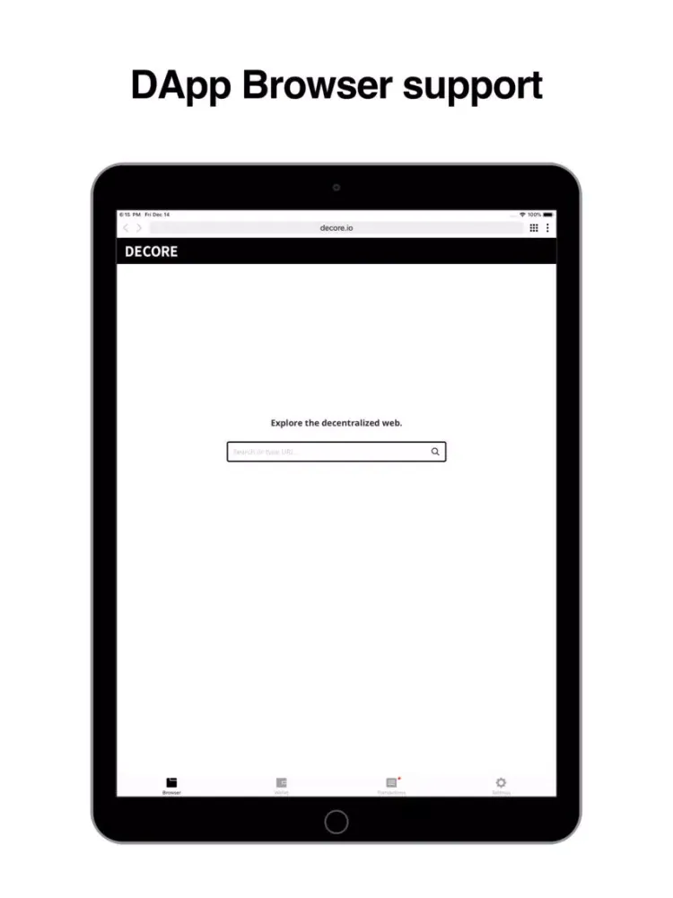 Decore is a mobile blockchain wallet with DApp browser. Decore makes it easy for you to securely manage, send and receive Ethereum and Ethereum-based ERC20 token. It also allows you to interact with DApps powered by Ethereum.