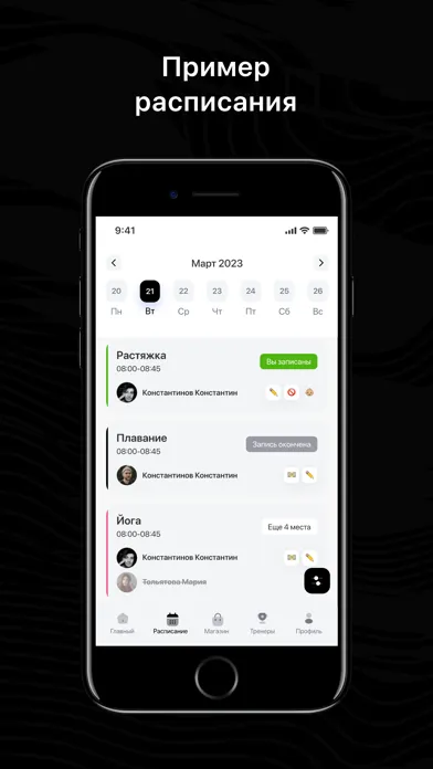 Посмотреть актуальное расписание тренировок;