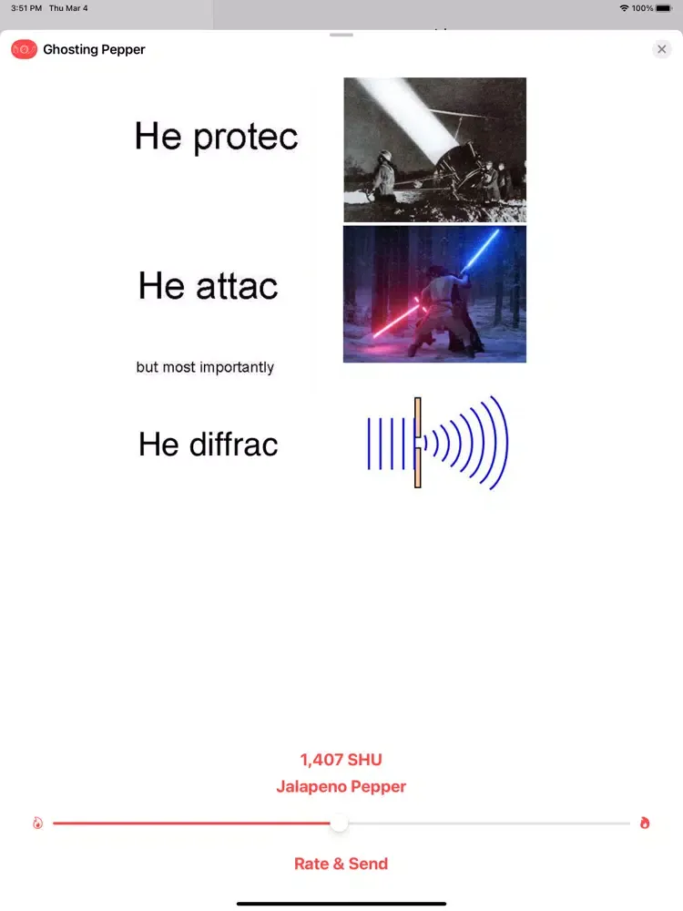 Send memes that are saved on your phone to your friends, and let them rate precisely how spicy the memes are.