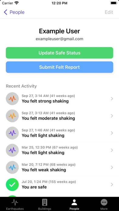 • Send felt reports or ‘I am safe’ messages to family/friends after an earthquake occurs