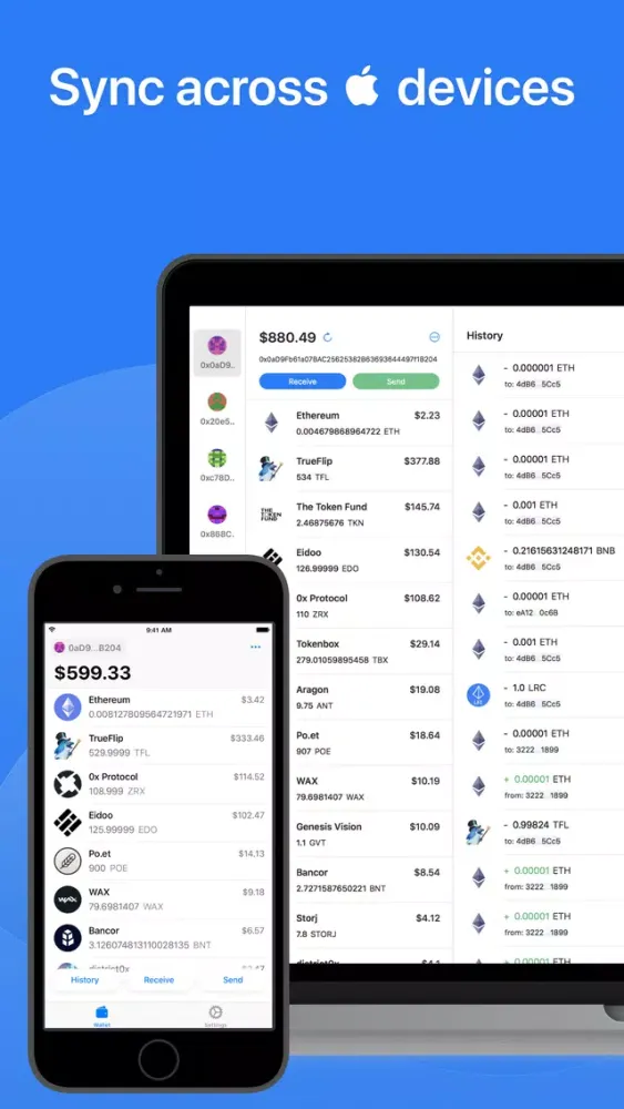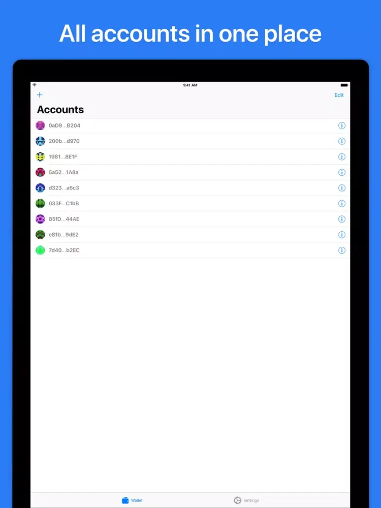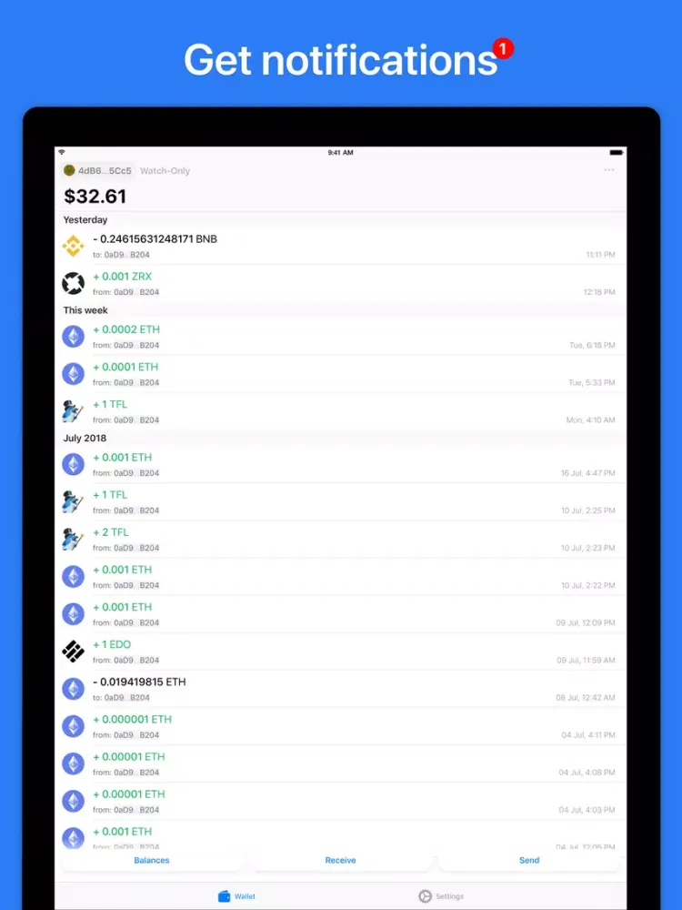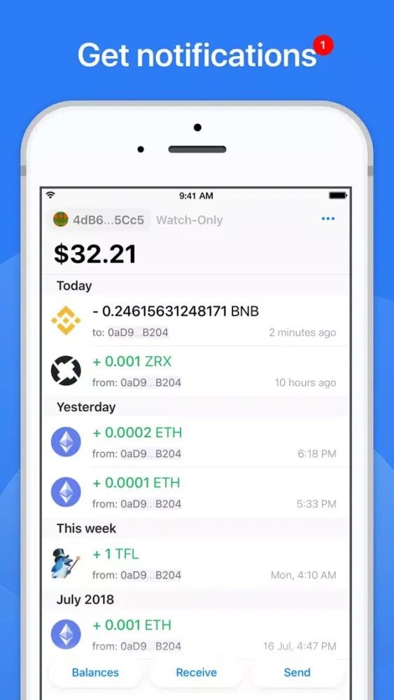 Security is our first priority. Your private keys are encrypted, stored locally on your iPhone, and never leave it. You and only you have access to your private data — Tokenary is a tool you can trust. Also, there is an option to track any address without inputting a private key.