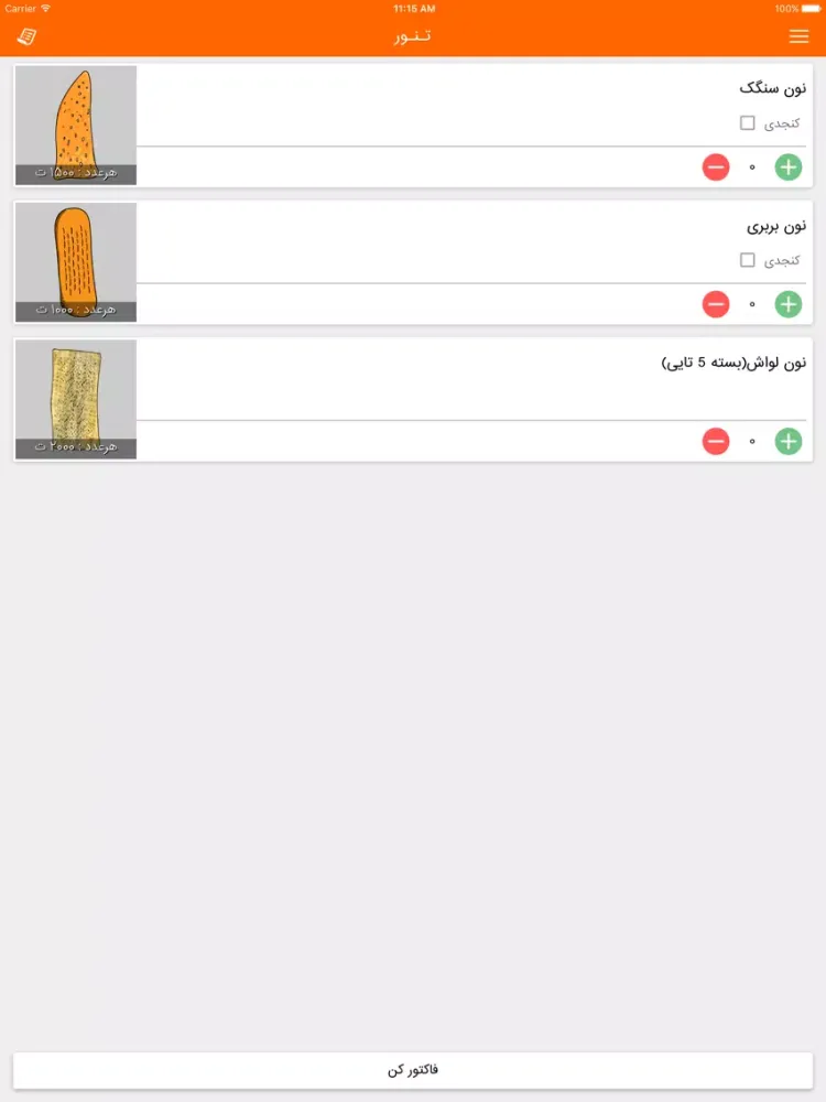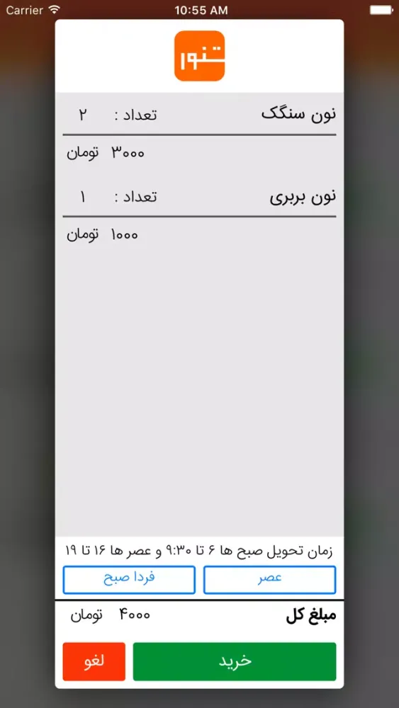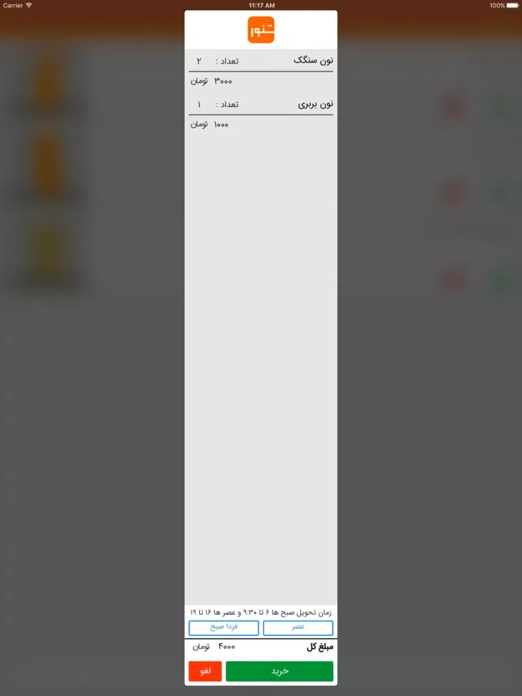 سفارش نان تازه با نرم افزار تـنـور