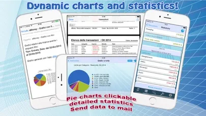 In a few simple steps, you can password-protect all your movements, view reports, statistics, graphs and send them by email, search for transactions by filtering the results, create custom categories, detailed and personalized PDFs, backups, Excel exports, Dropbox...