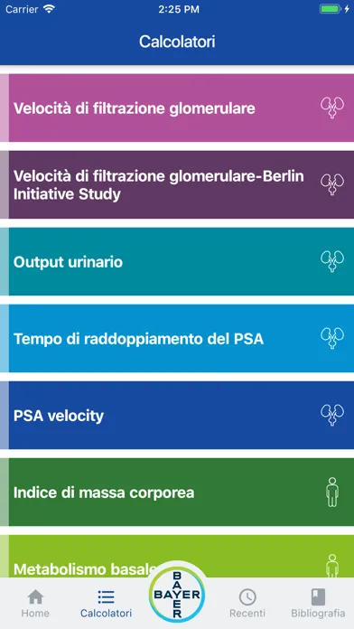 I calcolatori disponibili nell’App:
