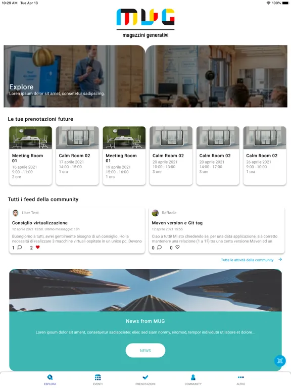 MUG is located in Via Emilia Levante 7 in Bologna and all the services inside it are connected to the App.